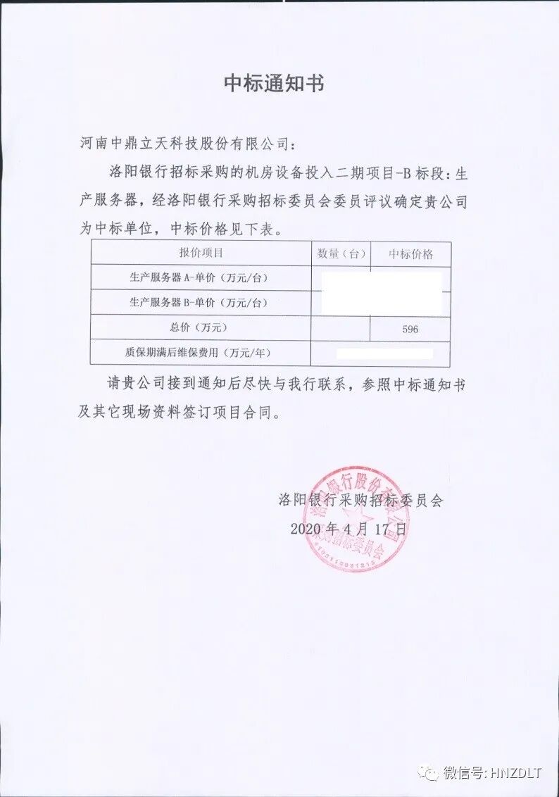 祝贺我公司在洛阳银行招标采购中顺利中标,首先向参与了项目投标工作的同仁表示衷心的感谢,感谢客户对于我们的认可和支持,也感谢公司各位幕后英雄兢兢业业的工作,正是大家的支持和协作,才能让我们脱颖而出顺利中标,这是对公司的综合实力、技术水平和公司团队凝聚力的肯定。